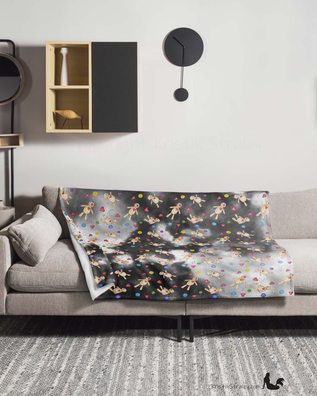 Cozy up with this fleece throw blanket adorned with original watercolor poppet voodoo doll designs. The magical and slightly eerie pattern adds a fun, unique flair to any room while keeping you warm and snug. A perfect blend of charm and comfort for those who love a little mystery in their décor.